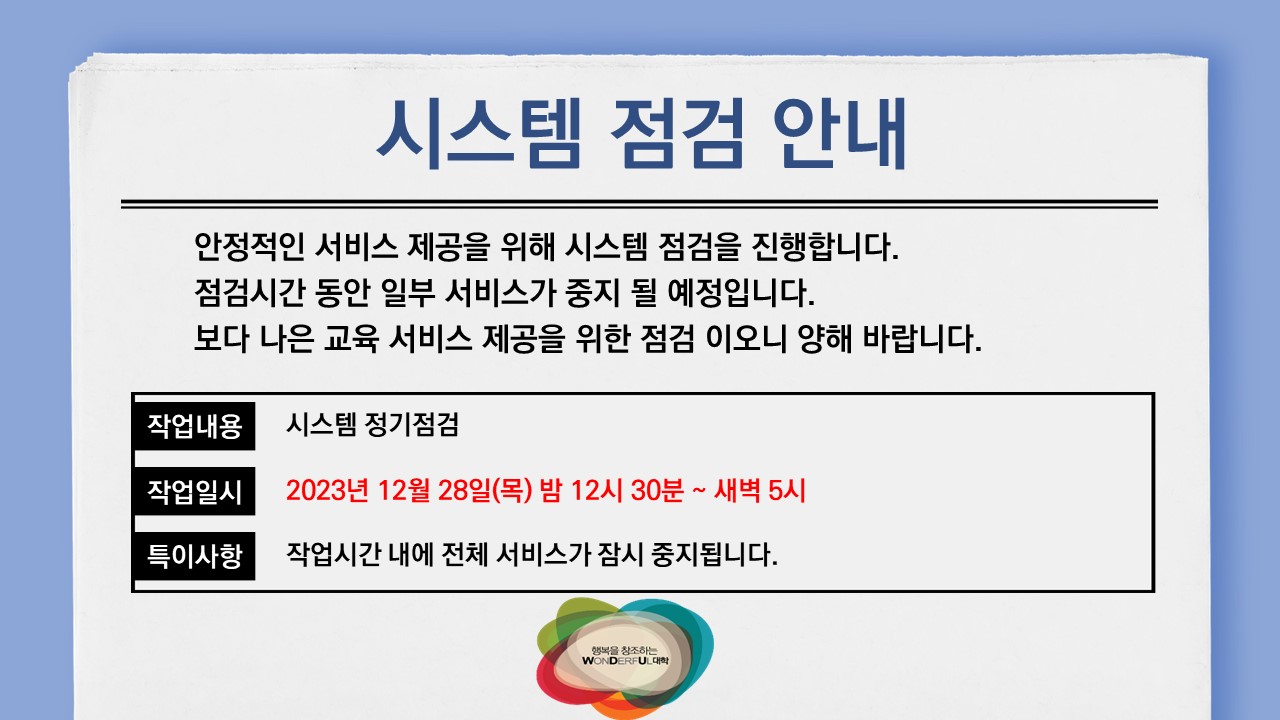 | 제목 | [점검안내] 시스템 점검 공지 | ||||