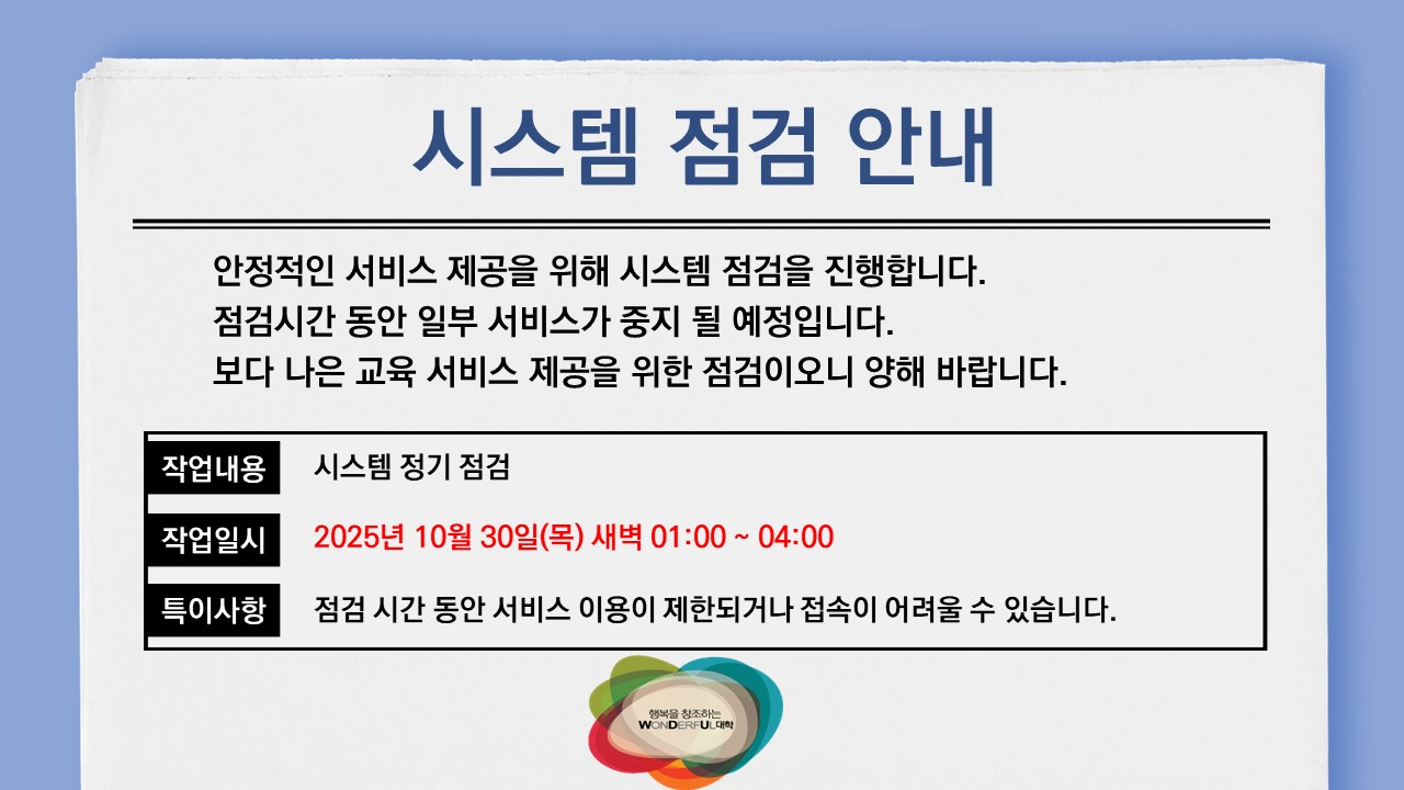 | 제목 | [점검안내] 시스템 점검 공지 | ||||