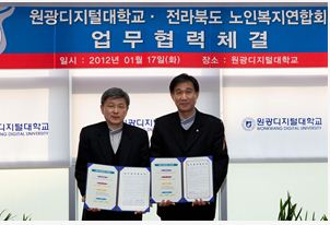 원광디지털대학교(총장 성시종)와 전라북도 노인복지연합회(회장 남궁단)가 상호 교류를 통한 교육 및 대학의 발전을 도모하는 자매결연협정을 체결했다.