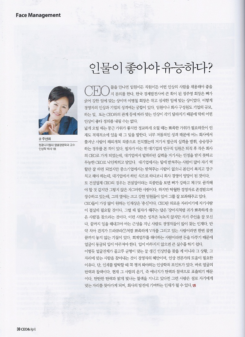 제목 인물이 좋아야 유능하다? - 얼굴경영학과 주선희 교수