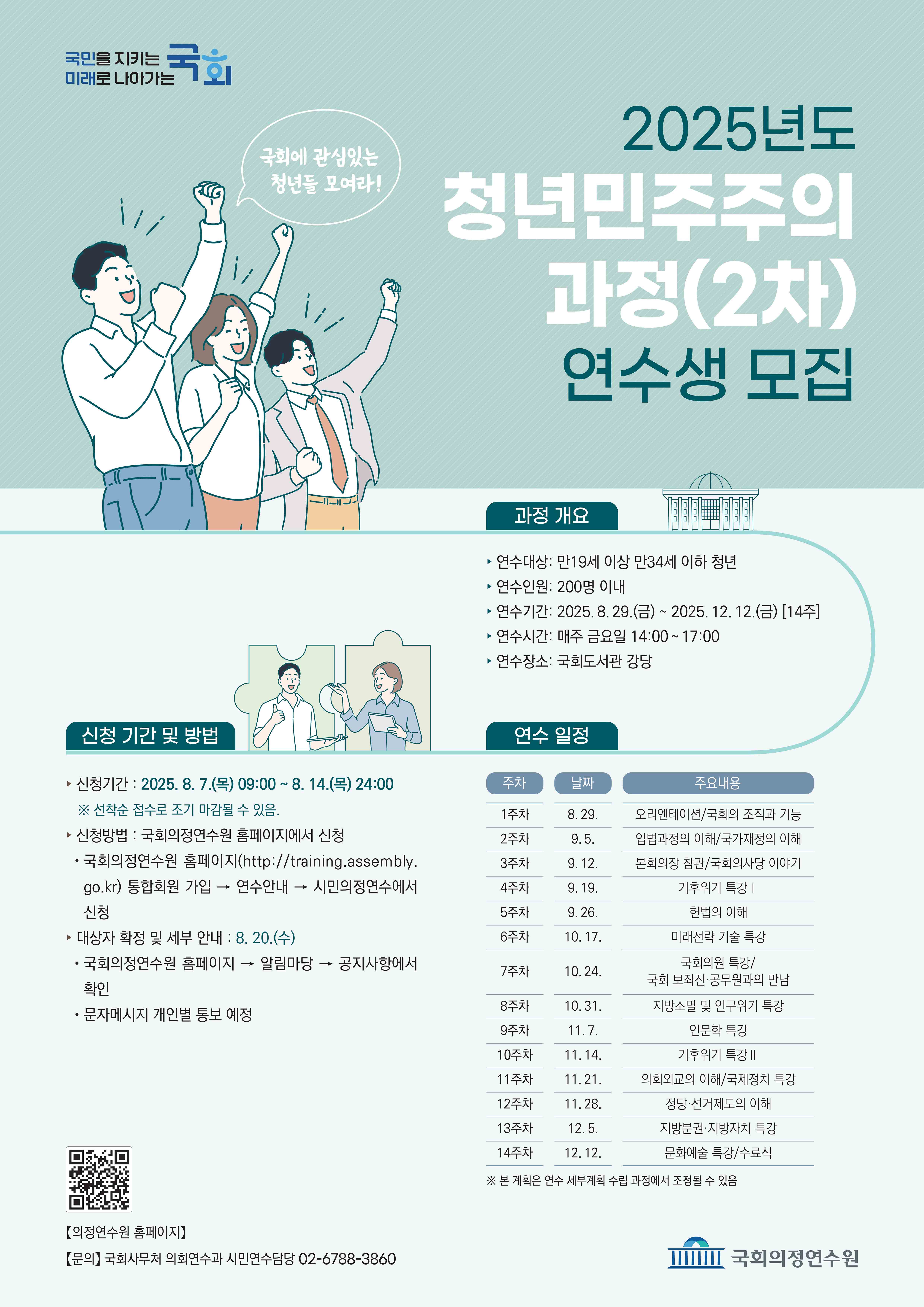 [학생참여] 2025년도 국회 청년민주주의과정(2차) 안내