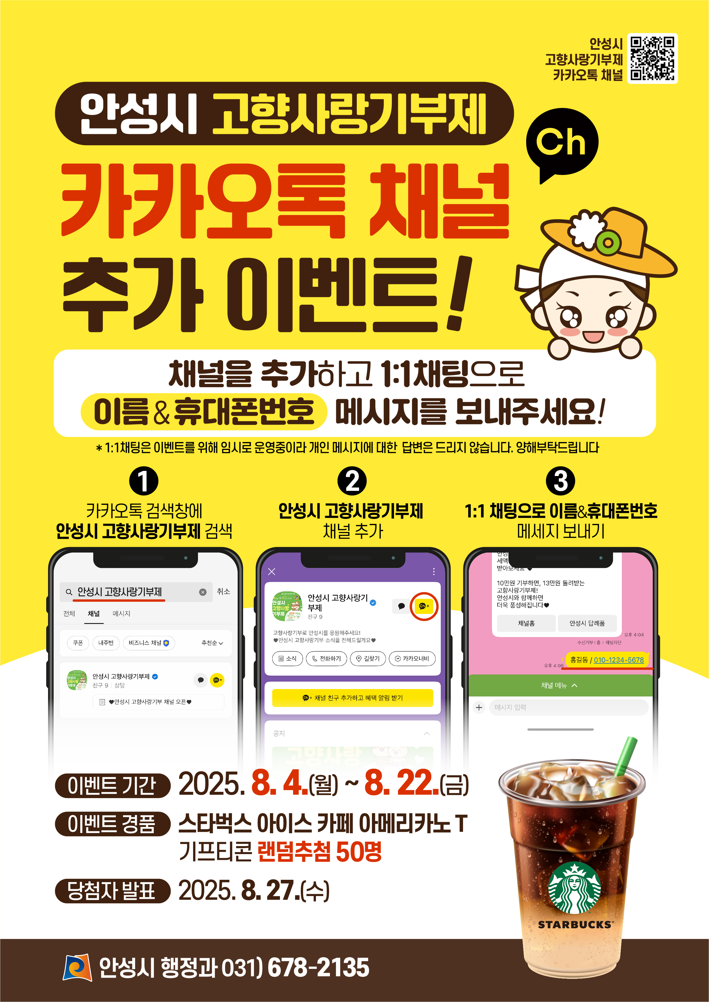 [학생참여] 안성시 고향사랑기부제 카카오톡 채널 추가 이벤트