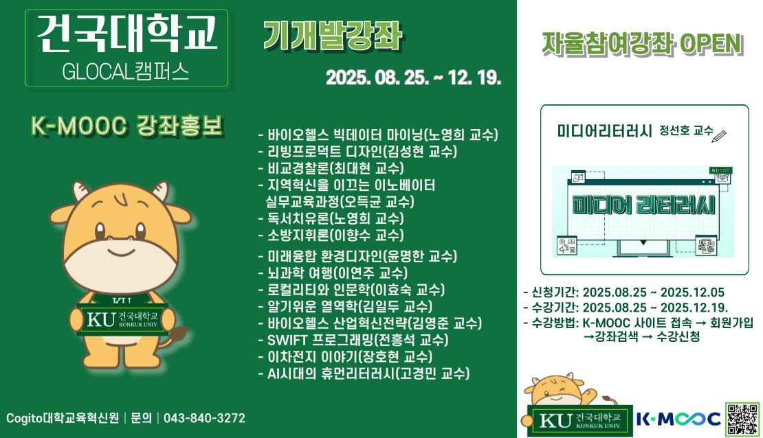 [학생참여] [건국대학교 GLOCAL(글로컬)캠퍼스]2025학년도 2학기 K-MOOC 강좌 수강 안내