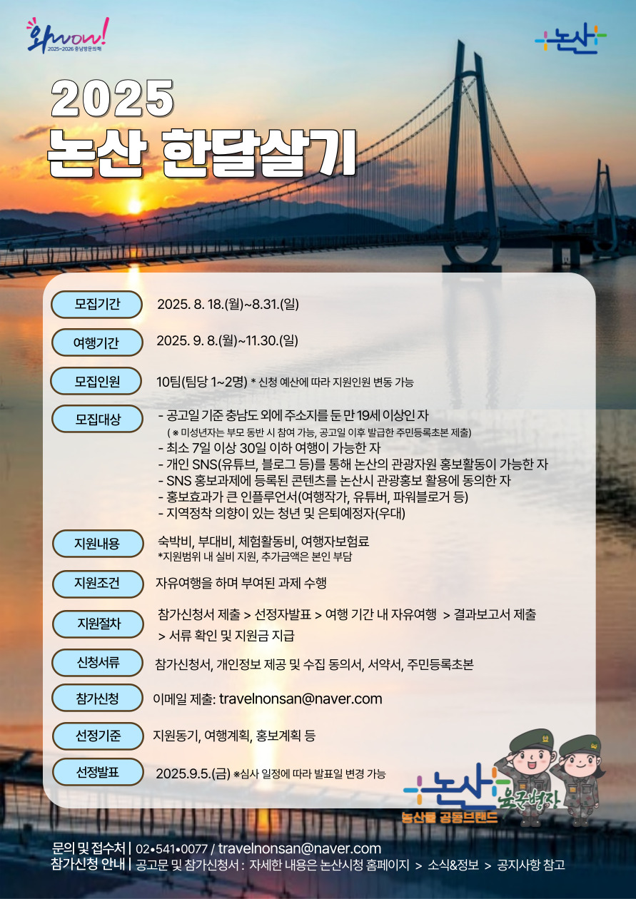 <「2025년 논산 한달살기」참가자 모집>