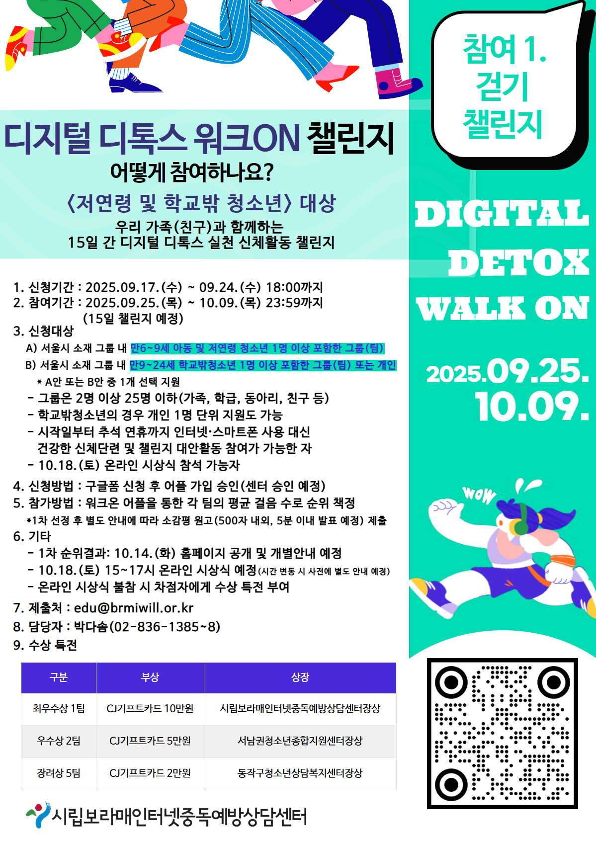 [공모전] 2025년 서울특별시장배 제4회 청소년디지털미디어중독예방 「워크온 걷기 챌린지 및 인스타툰 창작 공모전」
