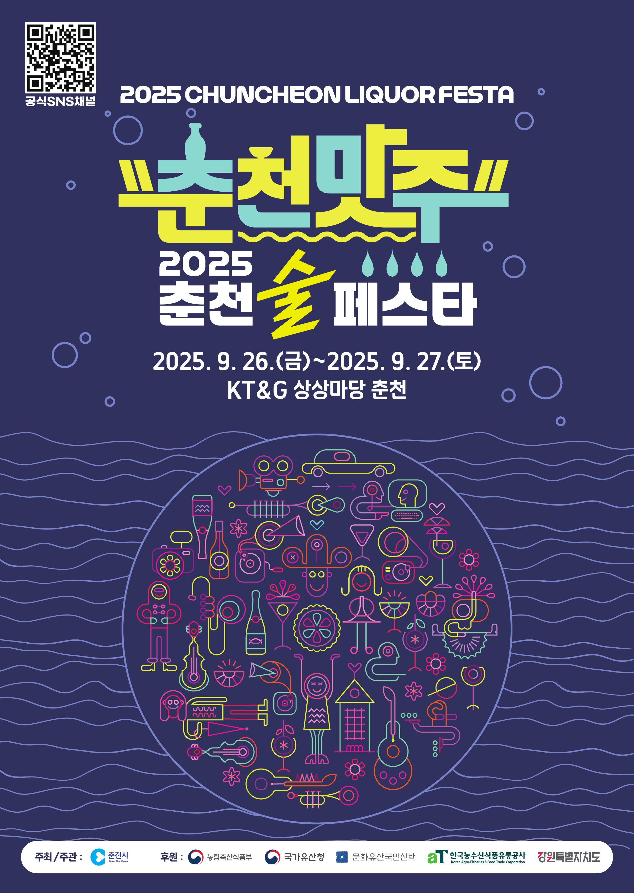 내춘천시는 농업 부가가치 창출과 전통주 인식 확산, 관광 활성화를 위해 '술·음식·문화를 함께 나누는 미식의 도시, 춘천'이라는 주제로 모두가 즐길 수 있는 축제「2025. 춘천 술 페스타」를 아래와 같이 개최하오니, 많은 참여 바랍니다.