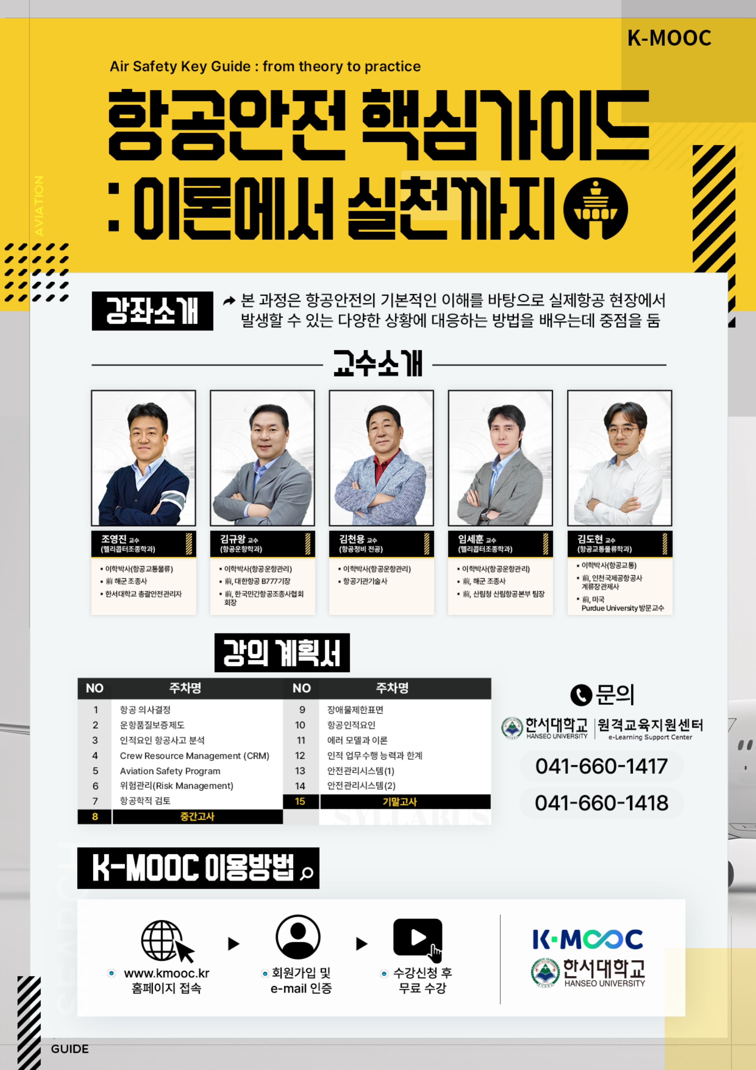 한서대학교에서는 2025학년도 한국형 온라인 공개강좌(K-MOOC)를 다음과 같이 운영하오니, 많은 수강 바랍니다.