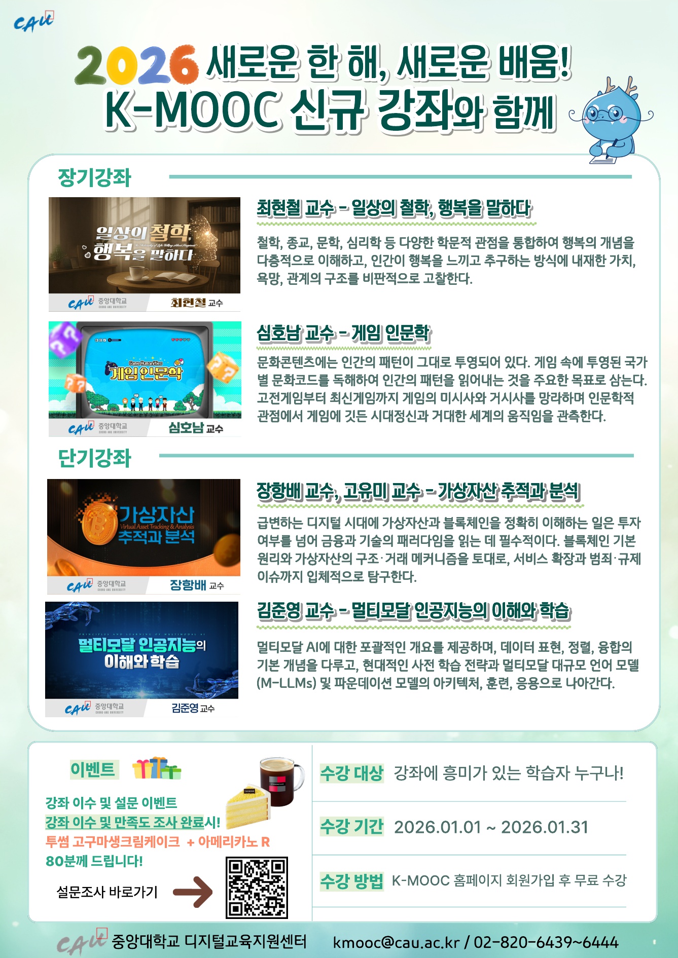 [학생참여] 중앙대학교 2025학년도 한국형 온라인 공개강좌(K-MOOC) 신규강좌 수강 안내