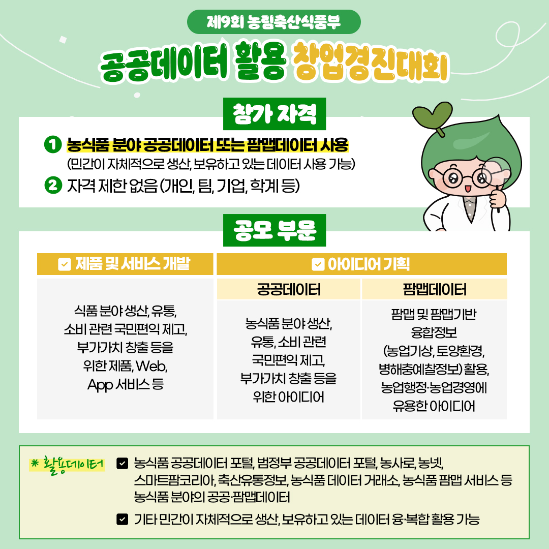 [창업] 제9회 농림축산식품부 공공데이터 활용 창업경진대회