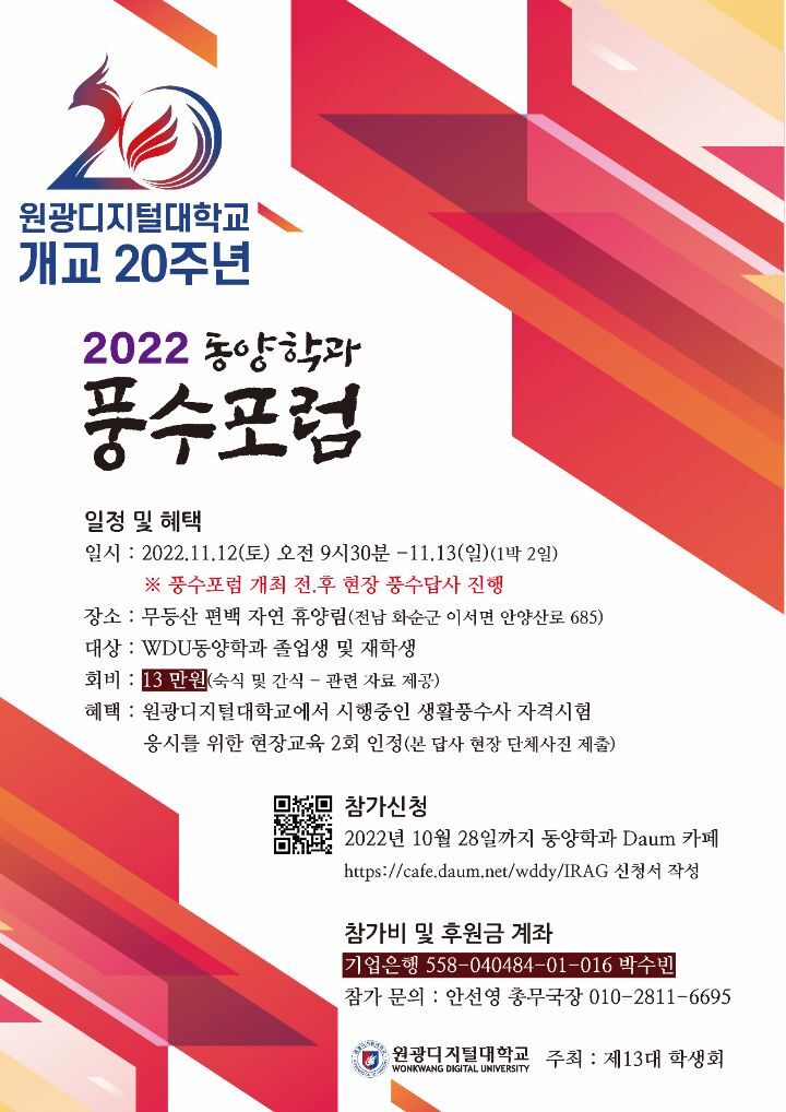 | 제목 | 개교 20주년 동양학과 '풍수포럼' | 등록일 | 2022-10-12 | 조회수 | 447 |