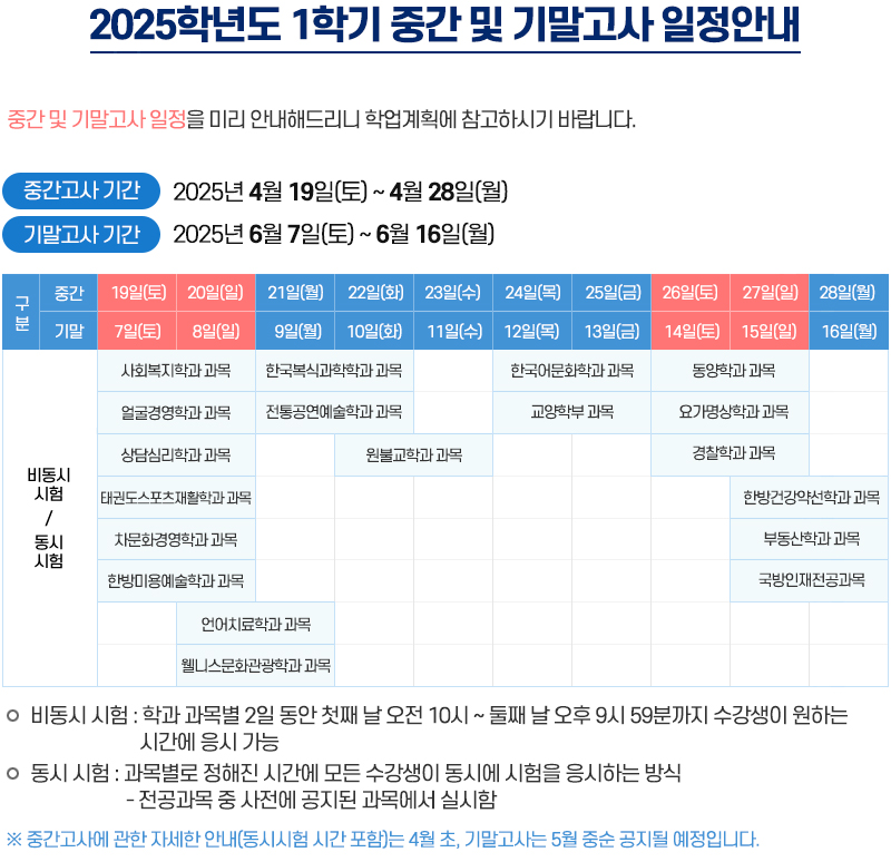 [시험] 25-1학기 중간 및 기말고사 비동시 시험 일정안내