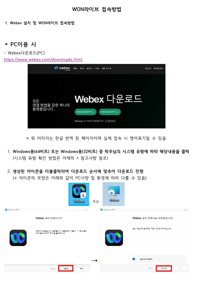 (PC) webex다운로드 방법 및 won라이브 이용방법 안내.pdf
