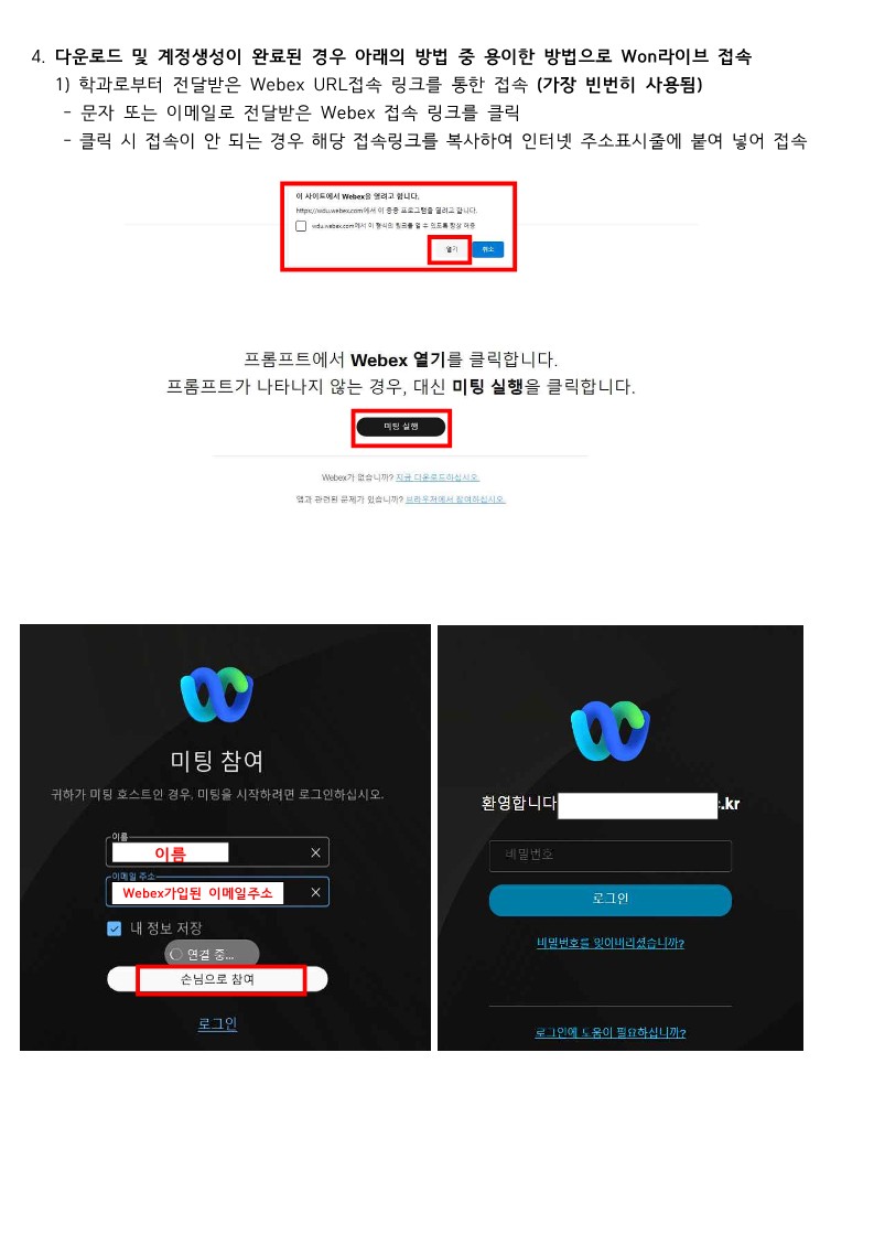 (PC용) WON라이브 이용 매뉴얼(Webex)