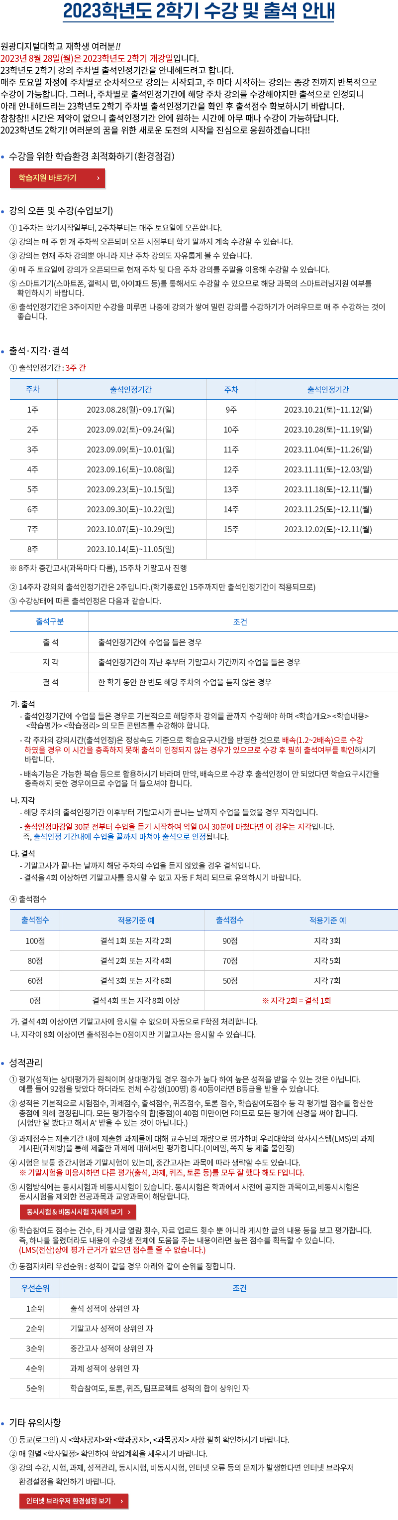 [수업] 23-2학기 수강 및 출석안내