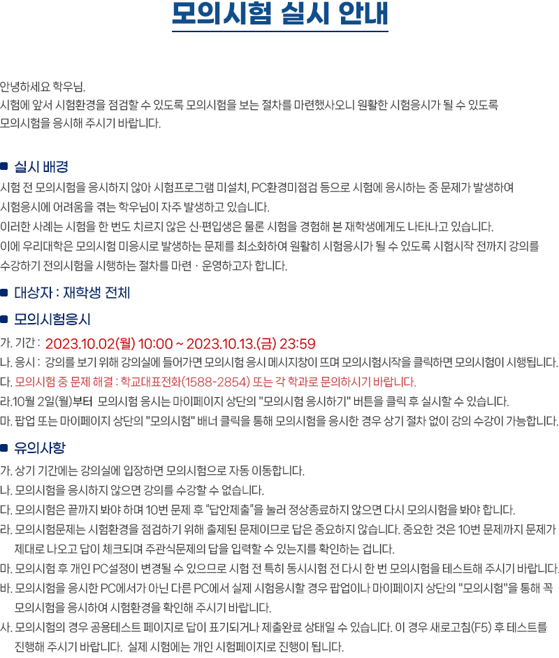 [시험] 모의시험 의무 응시 안내[23-2학기 중간고사]
