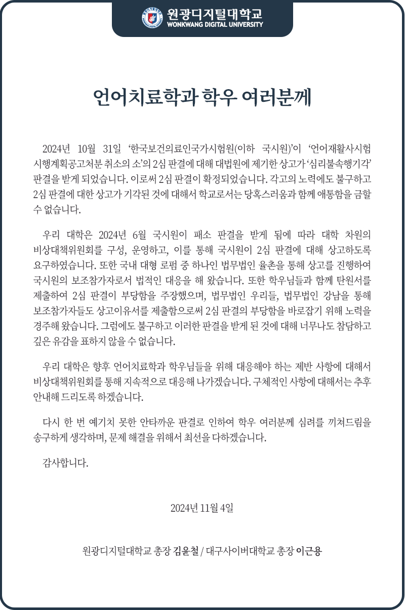 언어진단도구 대여 일시중단(11/11~11/15) 안내