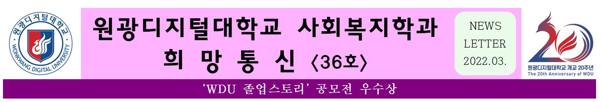 | 제목 | [희망통신 36호]42년 만의 기적! - 사회복지학과 박경희(18학번) | 등록일 | 2022-03-03 | 조회수 | 123 |