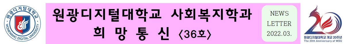 | 이전글 | [희망통신 36호] 포기하지 않고 한 걸음 한 걸음씩 ? 졸업, 청소년상담사, 사회복지사1급(이미림 (20학번)) | 2022-03-08 |