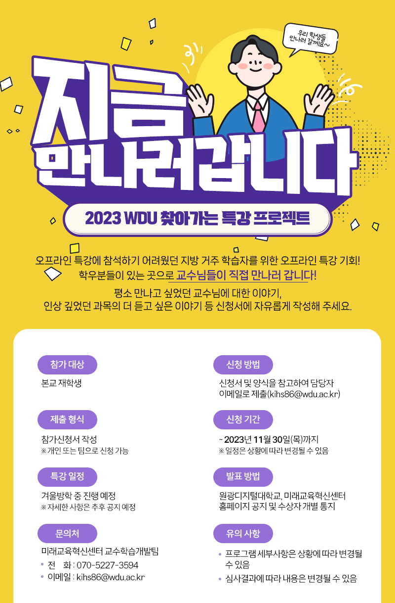[미래교육혁신센터] WDU 찾아가는 특강 - 지금, 만나러 갑니다! !(~11.30.)