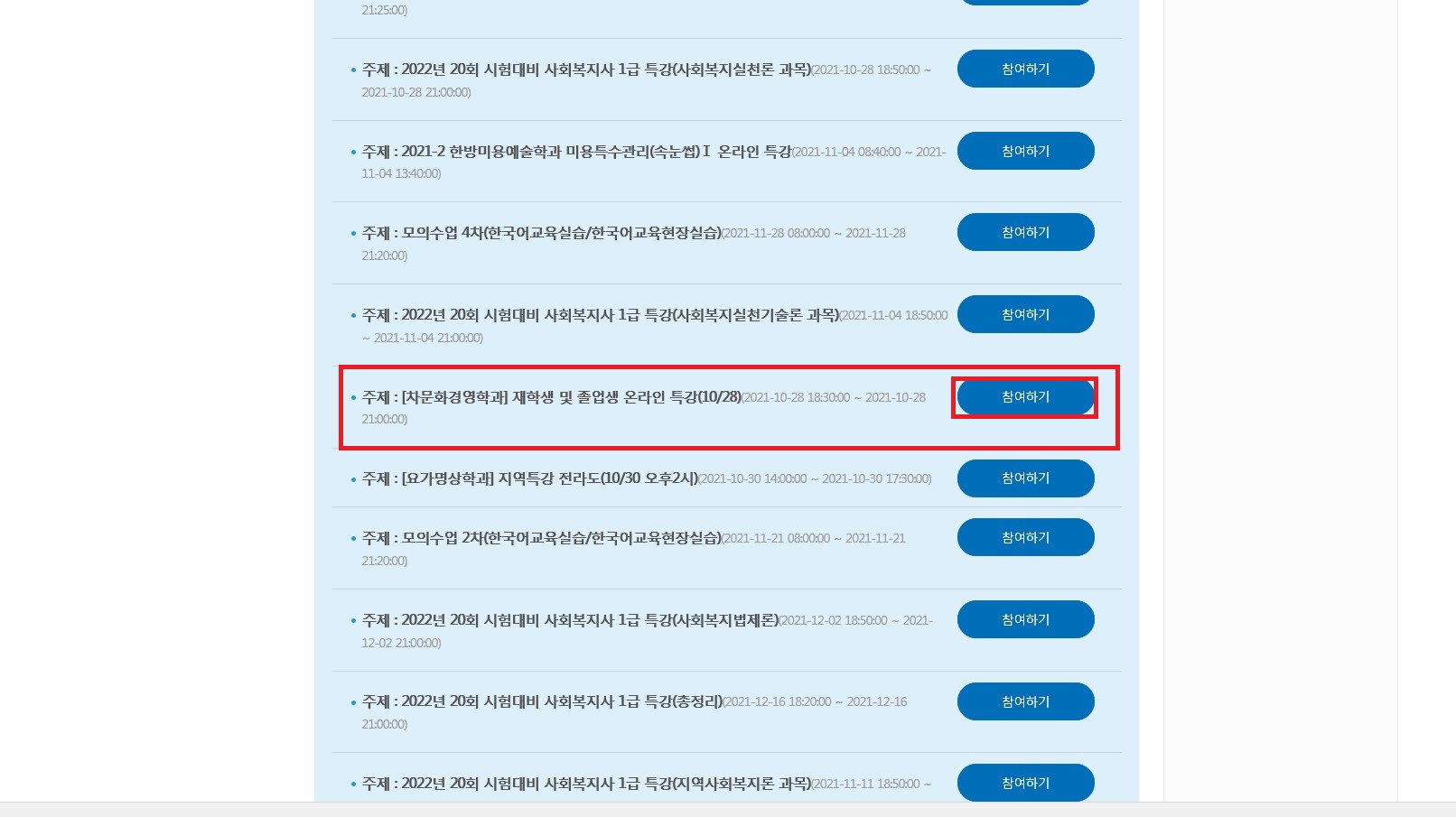 2. 해당 베너를 찾아 '참여하기'를 클릭하면 접속됩니다.