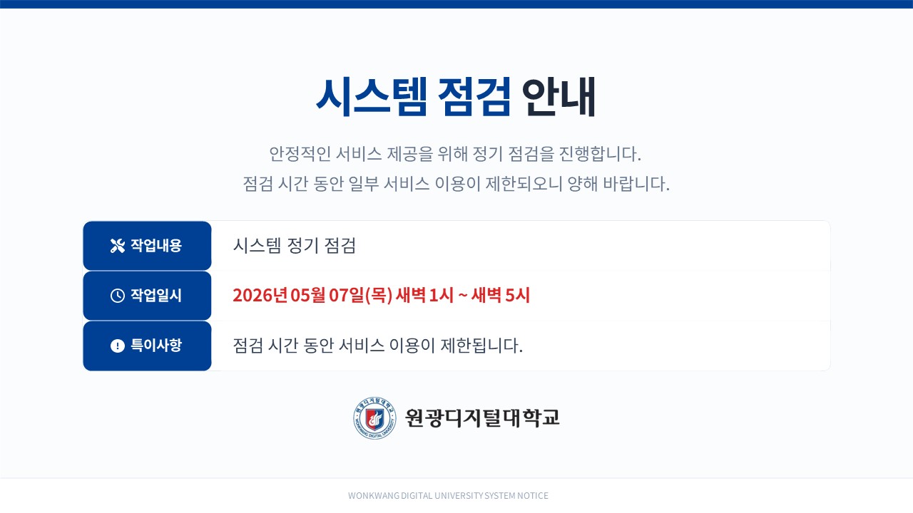 [점검안내] 시스템 점검 안내(2026년 5월 7일(목) 새벽 1시~5시)