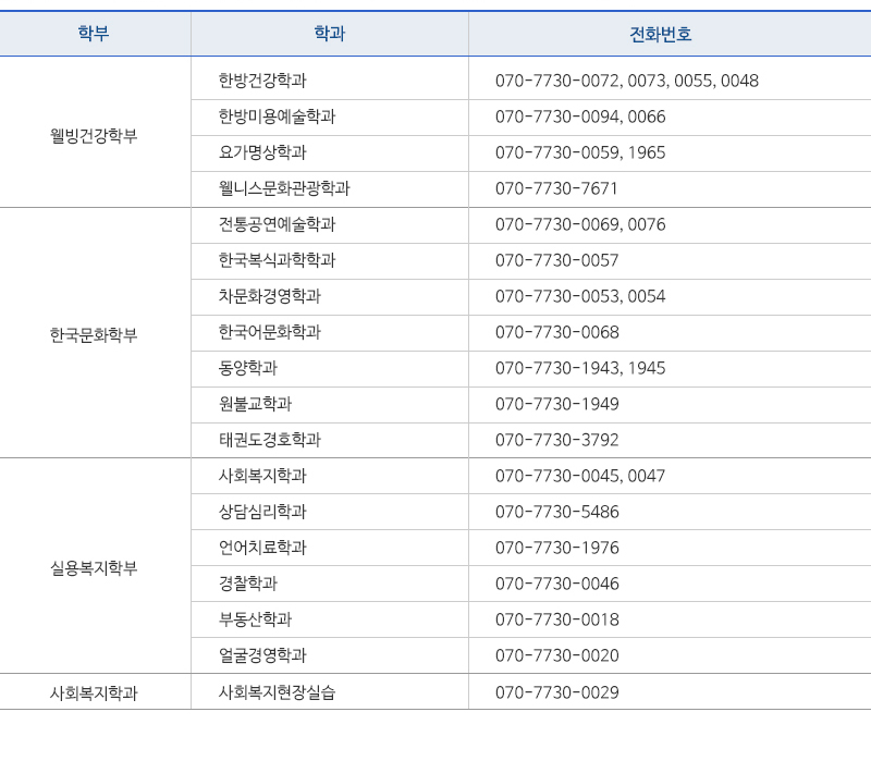 ■ 상담 불가학과 : 원불교학과 , 한국복식과학학과 , 차문화경영학과