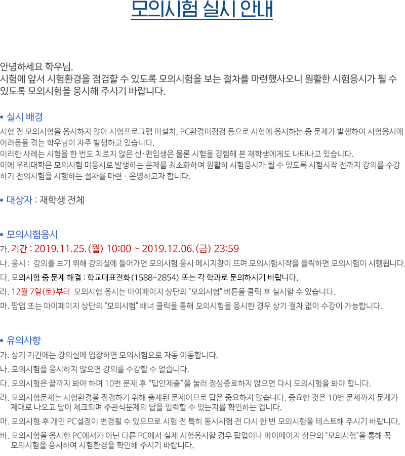 [시험] 모의시험 의무 응시 안내[19-2학기 기말고사]
