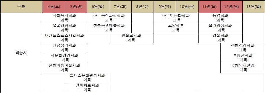 ※ 각 과목별 시험일정(동시시험과목, 비동시시험과목)은 첨부파일에서 확인 가능합니다.