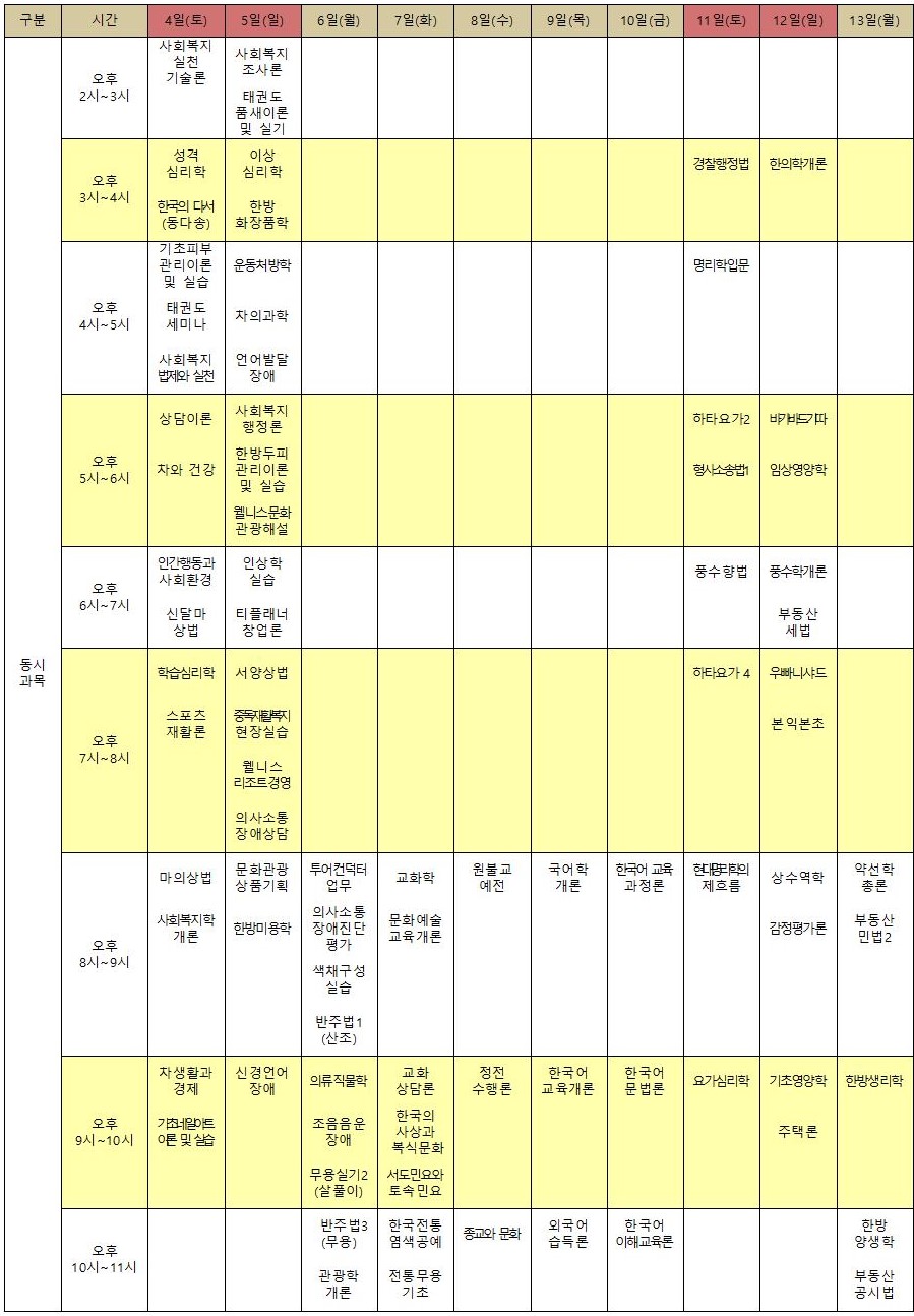 다. 과목별 시험시간 및 시험관련 상세내용은 과목공지게시판에서 꼭 확인하시기 바랍니다.