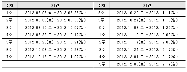1. 개강일 : 2012년 9월 3일(월) 10시