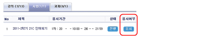 가. 학우님께서 시험응시를 하게 되면 시험시작에서부터 답안지 제출까지 모든 정보가 시스템에