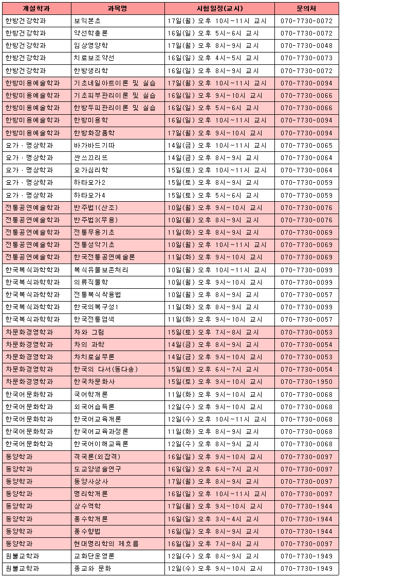 또한 각 과목별 시험에 관한 상세한 사항은 과목공지게시판을 통해 확인하여 주시기 바랍니다.