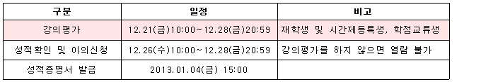 2012학년도 2학기 강의평가 및 성적확인(이의신청) 안내