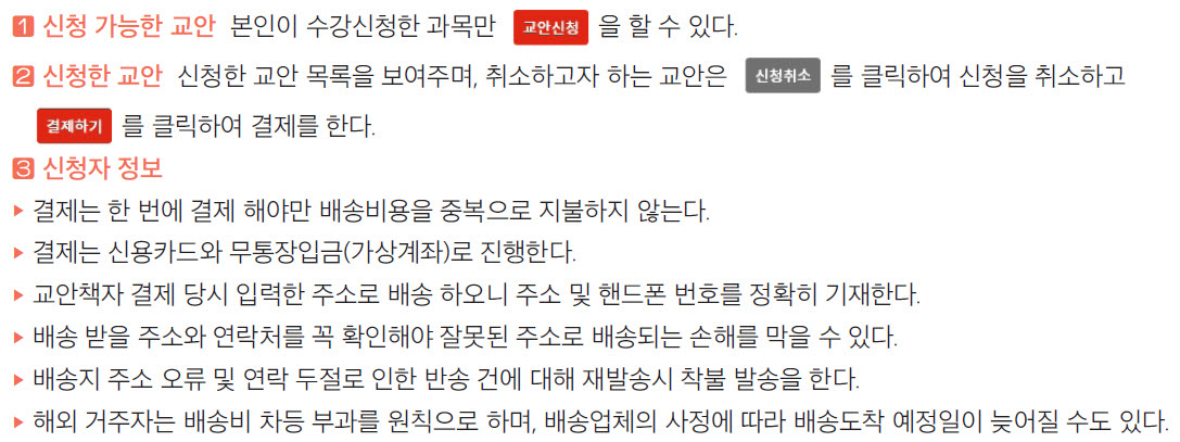 ■ 교안 신청 및 결제, 배송 일정