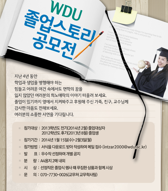 | 제목 | ‘WDU 졸업스토리’ 공모전 안내 | ||||