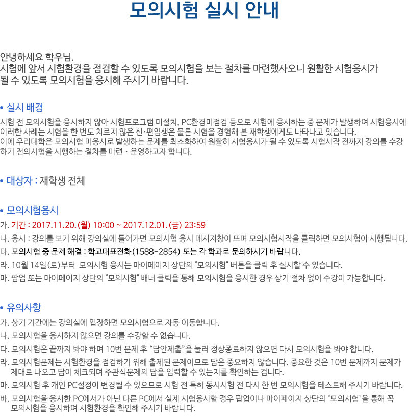 모의시험 의무 응시 안내[17-2학기 기말고사]