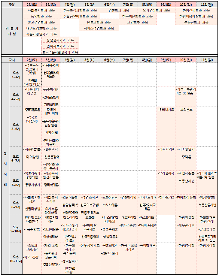 다. 과목별 시험시간 및 시험관련 상세내용은 과목공지게시판에서 꼭 확인하시기 바랍니다.