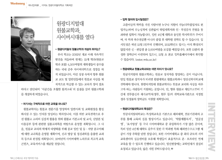 | 제목 | 원광디지털대 원불교학과, 사이버시대열다 | ||||