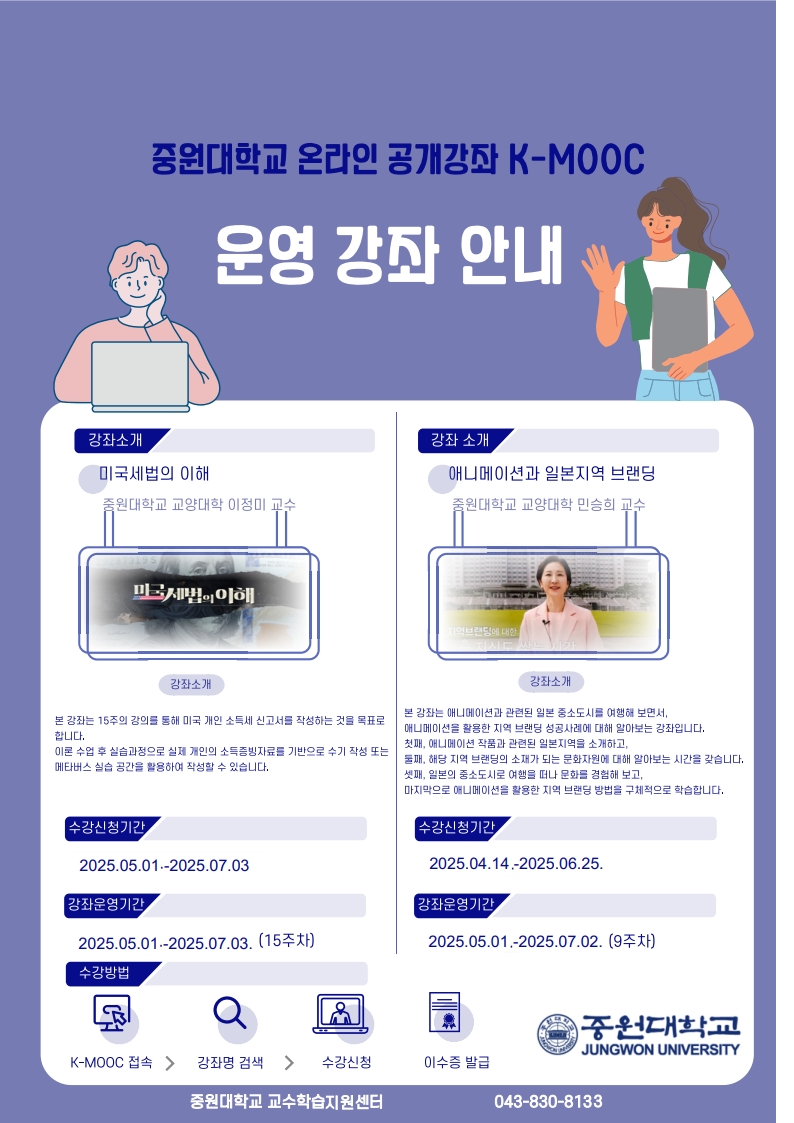 [학생참여] 중원대학교 2025학년도 1학기 K-MOOC 강좌 수강 안내