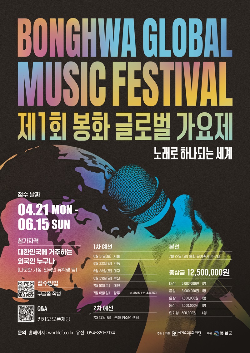 | 제목 | [학생참여] 「제1회 봉화 글로벌 가요제」참가자(다문화가정, 재한외국인) 모집 | ||||
