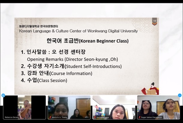 이번에 개설된 초급반은 필리핀 국적 학습자 9명이 수강할 예정이며수업은 2026630일까지 ZOOM을 활용한 온라인 실시간 비대면 강의 형식으로 진행될 예정이다.